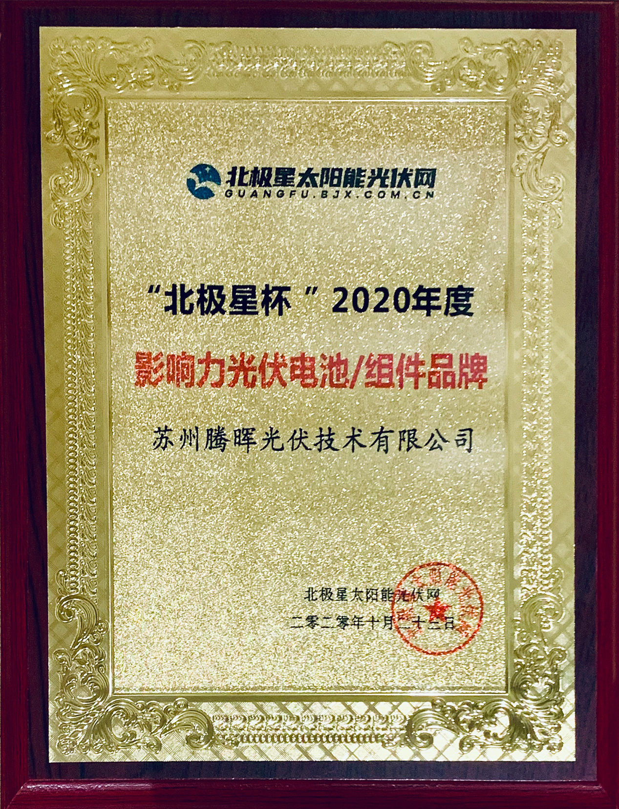 2020年10月23日,“北極星杯”2020光伏影響力品牌評(píng)選頒獎(jiǎng)典禮在北京舉辦,經(jīng)過激烈角逐,騰暉光伏從260多家入圍企業(yè)中脫穎而出,榮膺2020影響力光伏電池/組件品牌,此外,阿根廷高查瑞315 MW光伏電站項(xiàng)目榮獲“影響力特色光伏應(yīng)用項(xiàng)目案例獎(jiǎng)”。