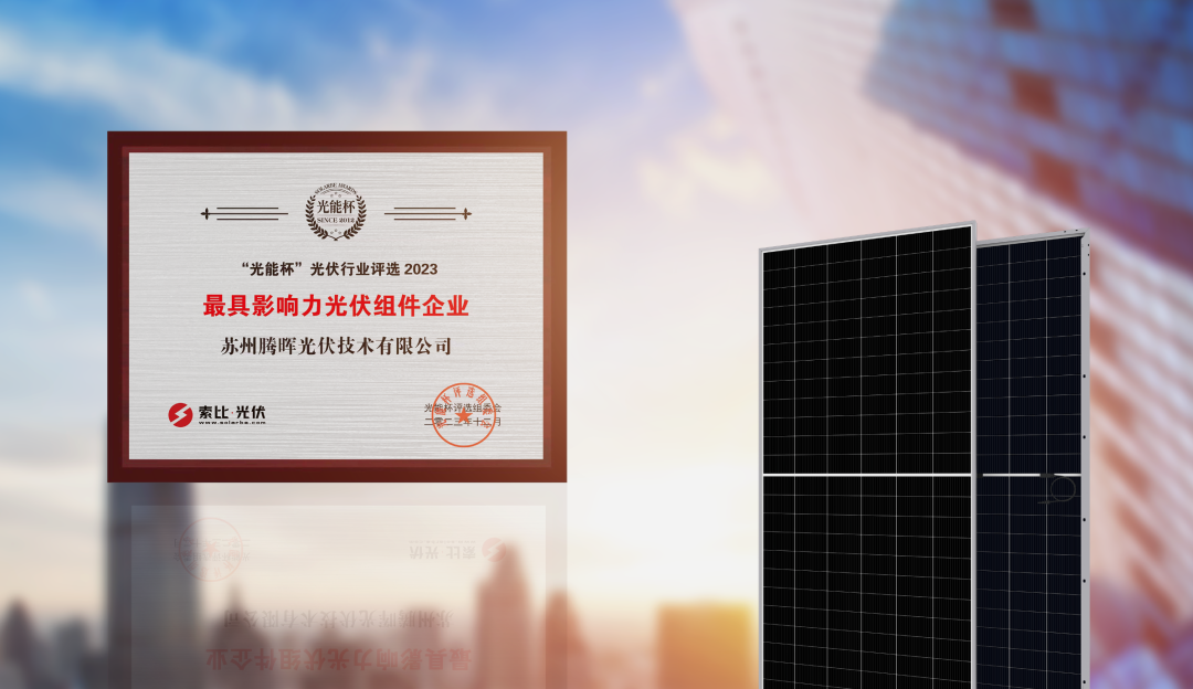 2024年1月11日,由索比光伏主辦的第十一屆“光能杯”評選頒獎典禮在蘇州順利召開。在這場評選中,騰暉光伏憑借卓越的技術(shù)實(shí)力和優(yōu)異的市場表現(xiàn),榮獲了備受矚目的“2023年度最具影響力光伏組件企業(yè)”大獎。