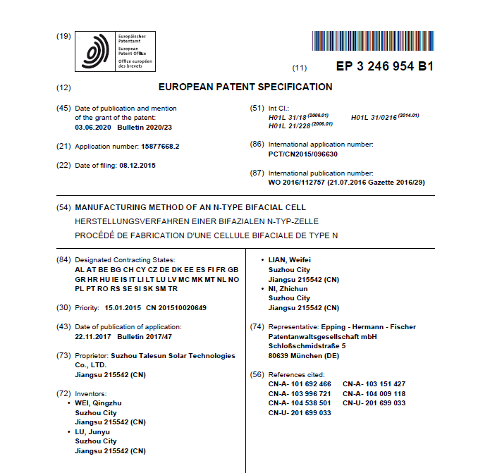 近日,騰暉光伏海外專利布局工作又取得了重要進(jìn)展,四項(xiàng)光伏產(chǎn)品及系統(tǒng)相關(guān)的PCT專利已完成進(jìn)入國(guó)家階段,其中一項(xiàng)發(fā)明專利進(jìn)入歐盟,三項(xiàng)發(fā)明專利進(jìn)入非洲。這為騰暉光伏核心產(chǎn)品及服務(wù)能夠進(jìn)入歐盟和非洲等地區(qū)的光伏市場(chǎng)提供了必要的技術(shù)保障。騰暉光伏將積極響應(yīng)國(guó)家“一帶一路”發(fā)展號(hào)召,依托自身在品牌、技術(shù)等方面的既有優(yōu)勢(shì),積極開展政府間國(guó)際科技合作攻關(guān)以及新產(chǎn)品國(guó)際市場(chǎng)開發(fā),促進(jìn)一帶一路沿線國(guó)家在新能源等領(lǐng)域的深入合作力度,提高各國(guó)之間在資源和市場(chǎng)的互聯(lián)互通、共享程度,通過(guò)綠色能源為一帶一路沿線國(guó)家的能源結(jié)構(gòu)改革、經(jīng)濟(jì)發(fā)展和生態(tài)環(huán)境改善做出貢獻(xiàn)。截至目前騰暉累計(jì)申請(qǐng)核心專利400多件,授權(quán)200多件,并建立了良好知識(shí)產(chǎn)權(quán)管理體系,為公司的全球化競(jìng)爭(zhēng)提供了良好的知識(shí)產(chǎn)權(quán)保障。