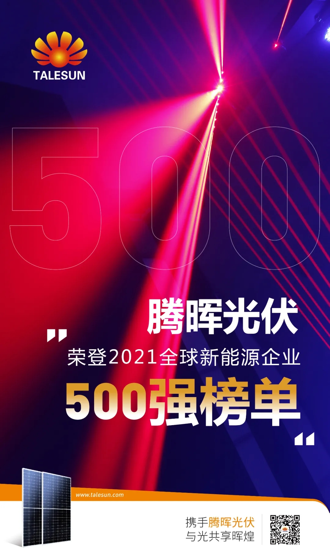 2021氫能產(chǎn)業(yè)發(fā)展論壇暨第十一屆全球新能源企業(yè)500強峰會于9月4日在山西太原舉辦,會上重磅揭榜“2021年全球新能源企業(yè)500強”。騰暉光伏已連續(xù)多年躋身全球新能源企業(yè)500強陣營,今年榮列本次榜單第272位。